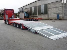 Tautliner mit verbreiterbarer Plane, Plateauauflieger Telesattel Tieflader